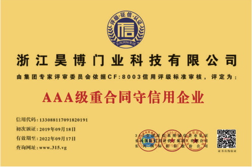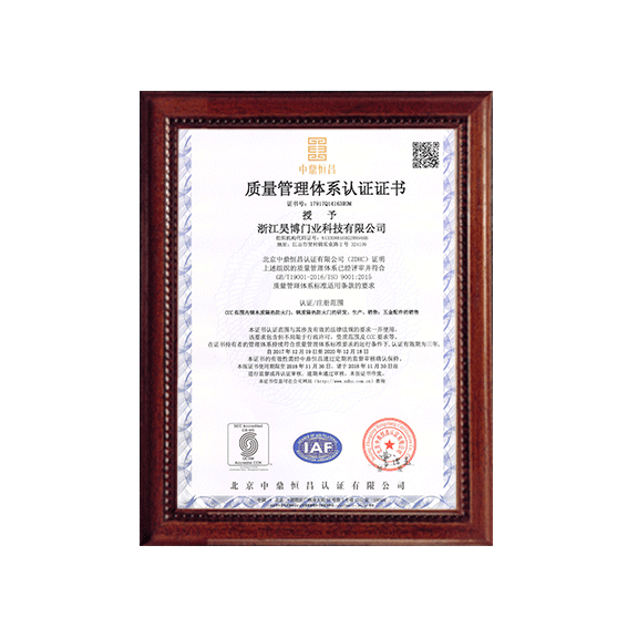 公司一直以來(lái)嚴(yán)格執(zhí)行ISO9001質(zhì)量體系和ISO14001環(huán)境管理體系標(biāo)準(zhǔn),建立了完備的科研、開(kāi)發(fā)、生產(chǎn)、銷售服務(wù)體系。公司是浙江省門業(yè)協(xié)會(huì)會(huì)員單位,江山門業(yè)協(xié)會(huì)理事單位,中國(guó)木材與木制品流通協(xié)會(huì)會(huì)員單位,江山市消防協(xié)會(huì)副會(huì)長(zhǎng)單位。
